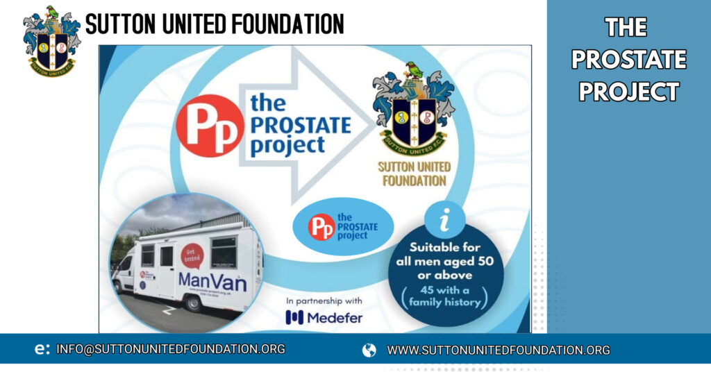 The Sutton United Foundation has teamed up with @theprostateproject to provide a Men’s Health Testing Event on Saturday 31st May at Sutton United FC’s Grounds in Sutton, Surrey.